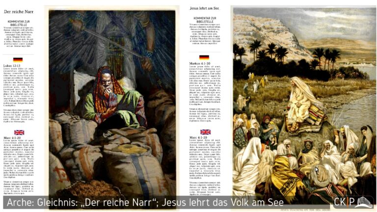 - Bildnachweis der Zeichnungen/Gemälde: Jaques Tissot (1836 – 1902) hat ca. 900 Werke hinterlassen; in den späteren Jahren verbrachte er in Palästina viel Zeit, um biblische Geschichten mit realitätsnahem Hintergrund zu erstellen