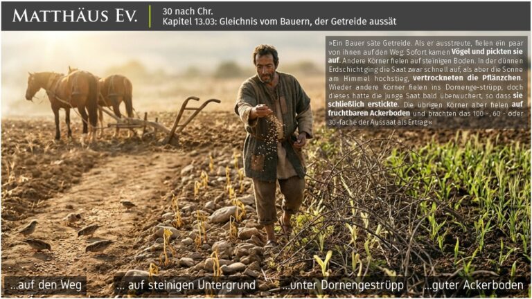 - Bildnachweis der Zeichnungen/Gemälde: Jaques Tissot (1836 – 1902) hat ca. 900 Werke hinterlassen; in den späteren Jahren verbrachte er in Palästina viel Zeit, um biblische Geschichten mit realitätsnahem Hintergrund zu erstellen