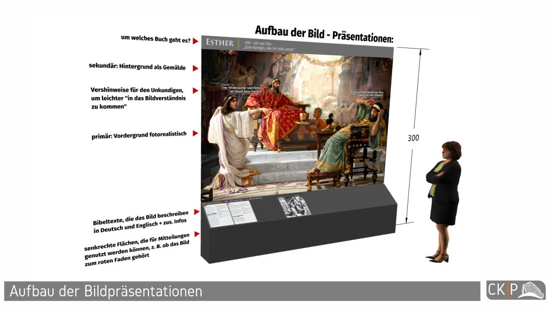 Sie ist separat gekennzeichnet, kann aber auch multifunktional genutzt oder kombiniert werden. Auch eine Fläche für biblische Kunst unbekannter Künstler wäre denkbar.
