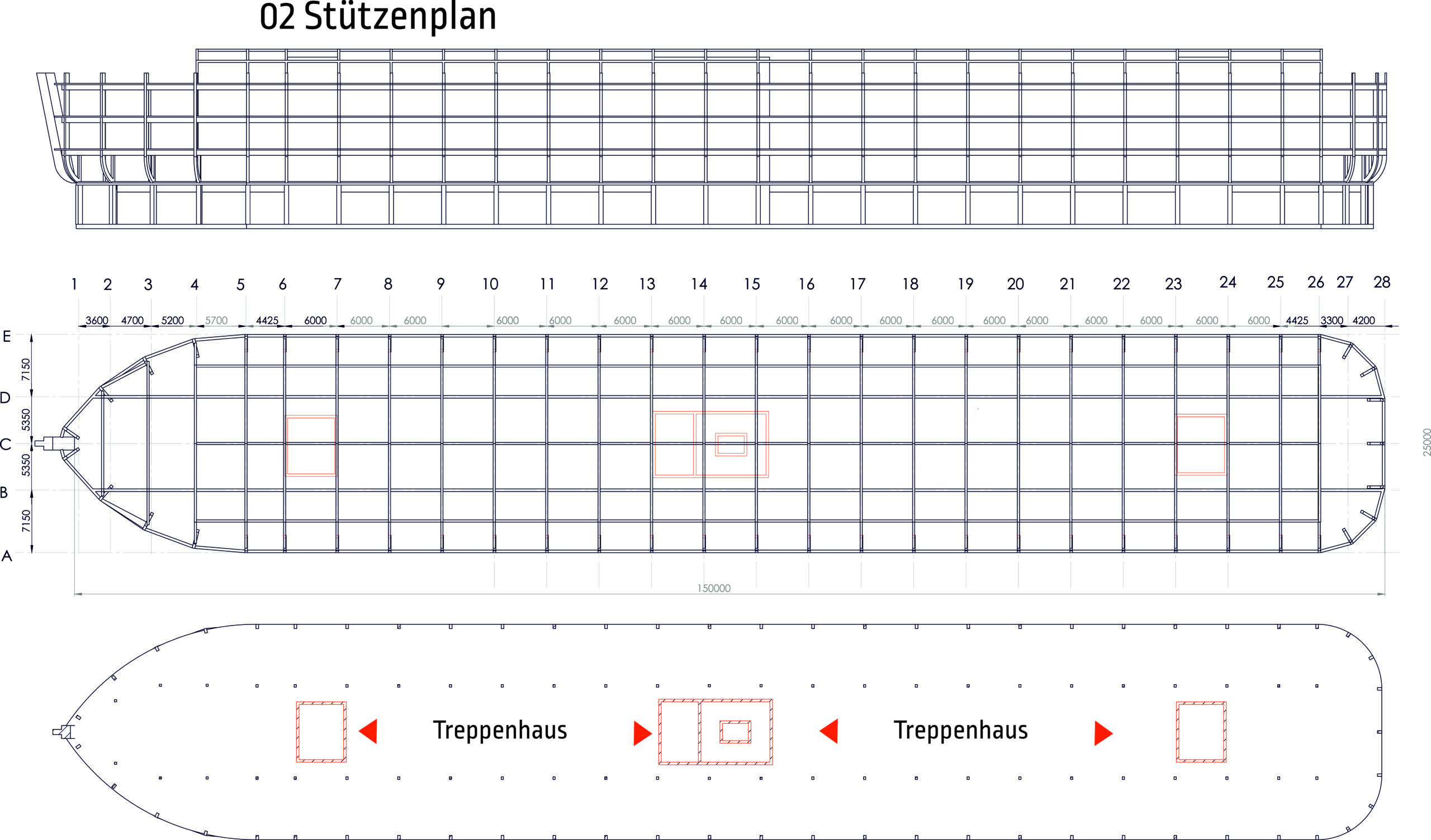 Es werden erste Konstruktionszeichnungen der Arche erstellt; diese sind für die genauere Kostenermittlung und alle weiteren Gewerke als Entscheidungs- grundlage sehr wichtig.
